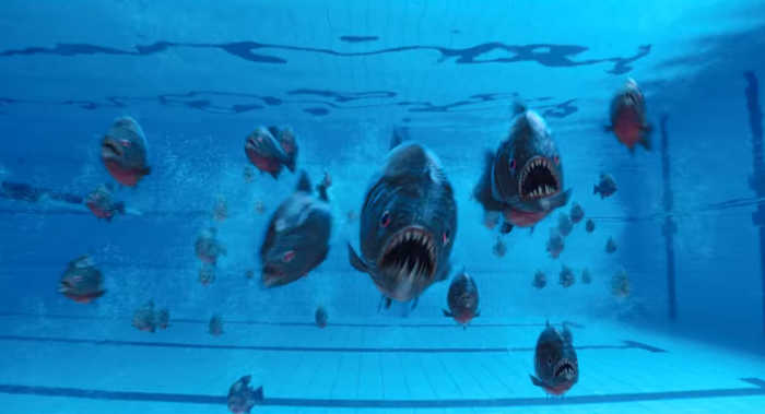 운동부애들이 있는 수영장에 양손가득 피라냐를 들고 찾아가는 웬즈데이.